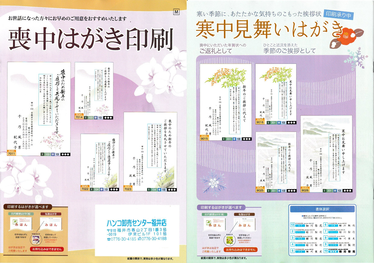 また、喪中はがき・寒中見舞いの印刷も受付しております。お世話になった方に失礼の無いよう早めに準備されることをお勧めします。